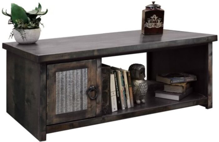 Necessity met simplicity and they hit it off beautifully in this charming, casual rustic group. Lightly patinaed corrugated metal door panels set inside a solid Knotty Alder frame give Jackson Hole all the charm of its namesake.