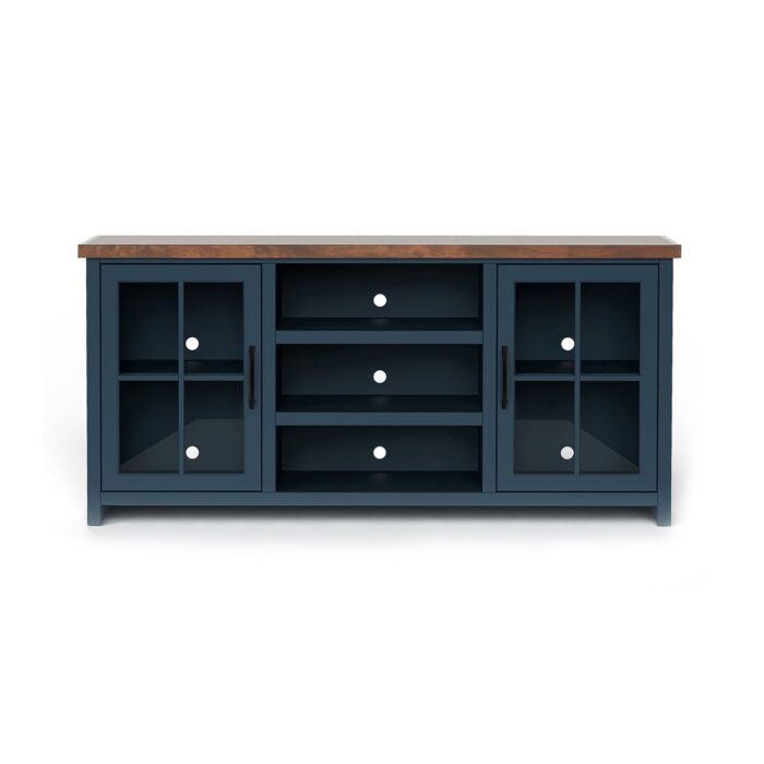 The Nantucket 67″ TV Stand combines coastal cottage charm with a touch of modern farmhouse flair. Designed to support televisions up to 80 inches, it offers ample storage for all your media essentials. Its distinctive Blue Denim and Whiskey finish adds a refreshing touch to any living space.