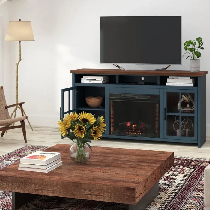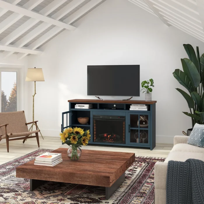Dressed in an alluring Blue Denim finish with Whiskey top, Nantucket’s Two Toned style creates a refreshing, new look to any room. Highlighting oil rubbed hardware and the glass panel doors in the consoles make a noticable statement. Sit back, relax and love your transformed home.