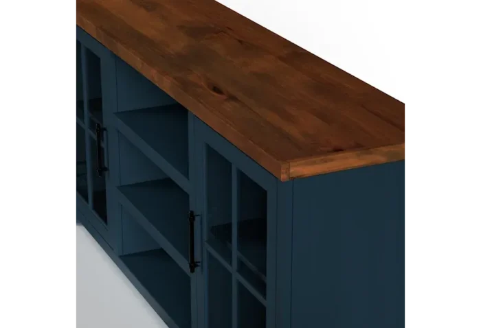 Dressed in an alluring Blue Denim finish with Whiskey top, Nantucket’s Two Toned style creates a refreshing, new look to any room. Highlighting oil rubbed hardware and the glass panel doors in the consoles make a noticable statement. Sit back, relax and love your transformed home.
