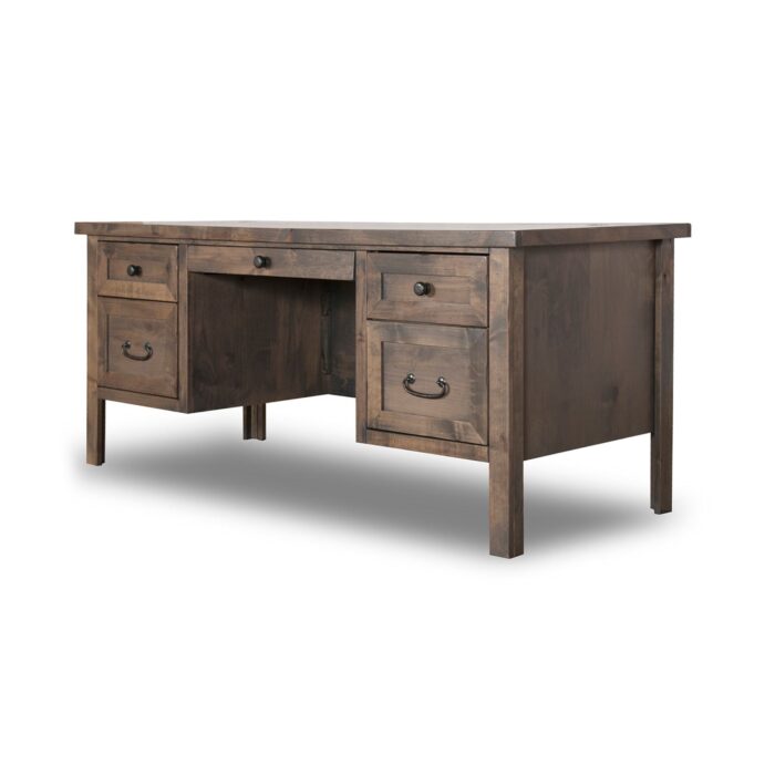 The Joshua Creek Executive Desk masterfully combines rustic allure with modern design, making it a standout addition to your home office. It features a drop-down keyboard drawer, a small drawer for office essentials, a file drawer, and a large cabinet to help keep your workspace tidy and efficient.